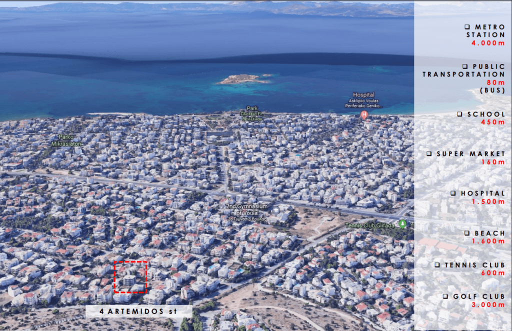scenery of the Athenian Riviera.  The living and dining area open out onto the spacious veranda and the private swimming pool located at the front. The green of nature and the blue of the sea form a scenery, ideal for a walk and lunch by the sea. It will be built with high construction standards in 2019, with nice quality finishes,is very traditional and ancient culture , have air conditioning in the room and one parking place. The apartment is 400 meters from the Schools,160m from Supermarket, 1,500m Hospital, 600 from Tennis Club and 3000m Colf club.