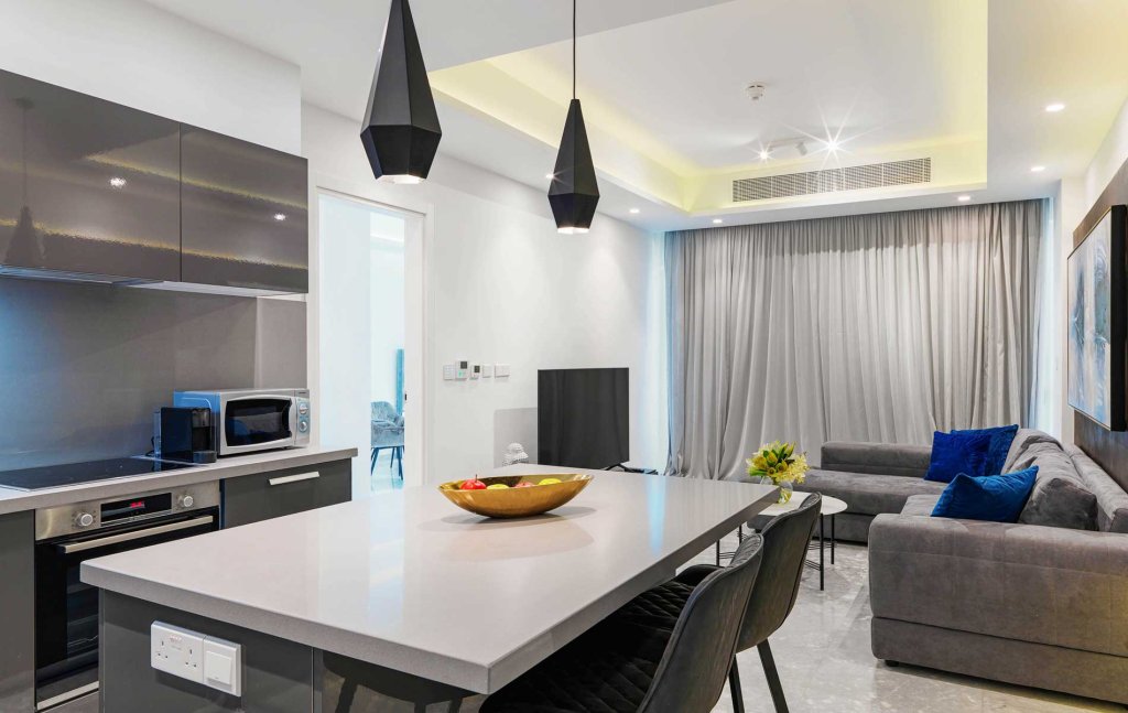 A two-bedroom modern apartment with an outstanding design. Providing a resort-style experience every single day, this luxurious residence is step away from the beach, the five-star award winning resort, countless dining experiences, and much more! The place to feel like a never-ending holiday for your and your loved ones.