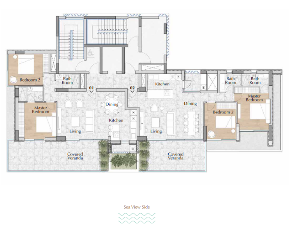 The residences offer beautiful living spaces facing the sea. Comprised
