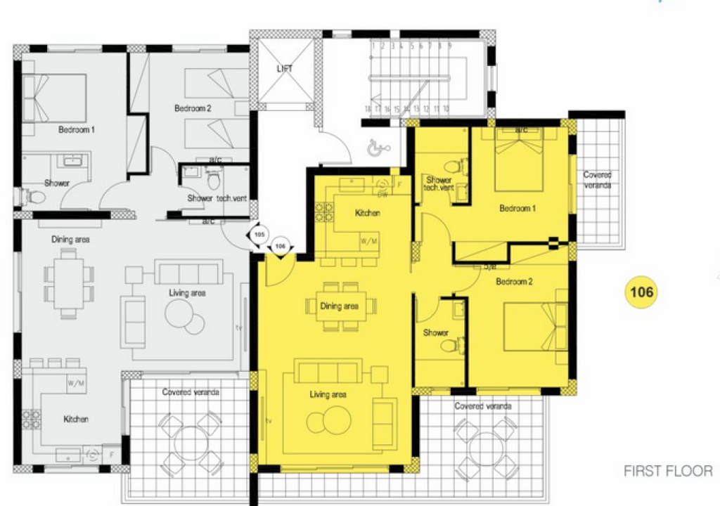 2 Bedroom Apartment is in the modern residential complex in the city centre of Paphos. It consists of two blocks of 2, 3 and 4 bedroom Apartments with communal swimming pools and a total of 5 3-bedroom villas of which 4 will have their own private swimming pools. Other than its contemporary and functional design, the other major advantage of the complex is its proximity to all city centre amenities such as the Kings Avenue Mall, a number of restaurants and bars, a few minutes’ drive to the beach and two upcoming universities that will open up in Paphos – the American University of Beirut, and the Cyprus University of Technology.