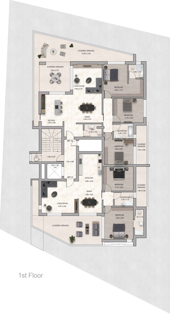 Well-Designed Layouts: The flats have well-thought-out layouts that maximize space utilization and functionality. Each unit offers a spacious living area, well-proportioned bedrooms, and an efficient kitchen and dining area. Open-concept designs, large windows for natural light, and large terraces.