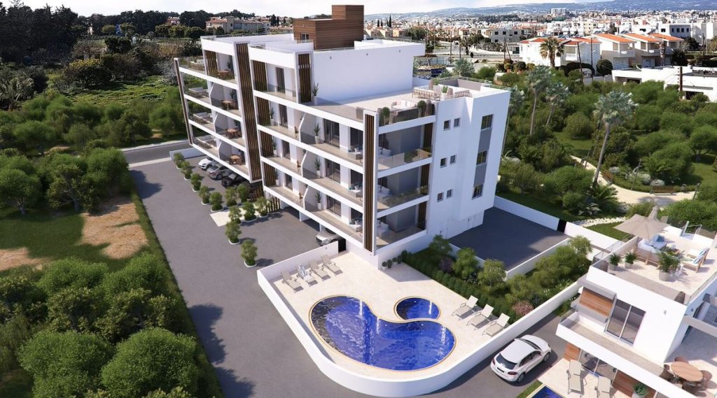 2 bedroom, 2 baths apartment for sale is a part of a new project in Paphos, near Kings Avenue Mall. It is 4 floors building, with a total of 14, 2 and 3-bedroom apartments in one of the most popular residential areas of Paphos. The project if featuring covered parking for tenants, a communal swimming pool, a jacuzzi and a playground This apartment is on the 1st floor, it is having 80 sqm indoor living area and 16 sqm covered veranda.