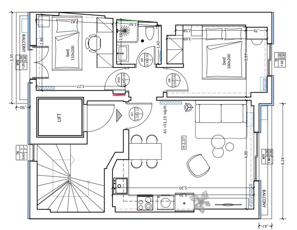 This 2-bedroom apartment is part of the new 7-storey apartment building in Pireaus, just 12 km away from Athens city center. The apartment occupies 1st floor and the size of the internal living area is 51.1 sqm with an additional 3.66 sqm of covered veranda. Bus station, pharmacies, supermarkets, the University of Piraeus, and Msrina Zeas are all within walking distance from the location of this new project.