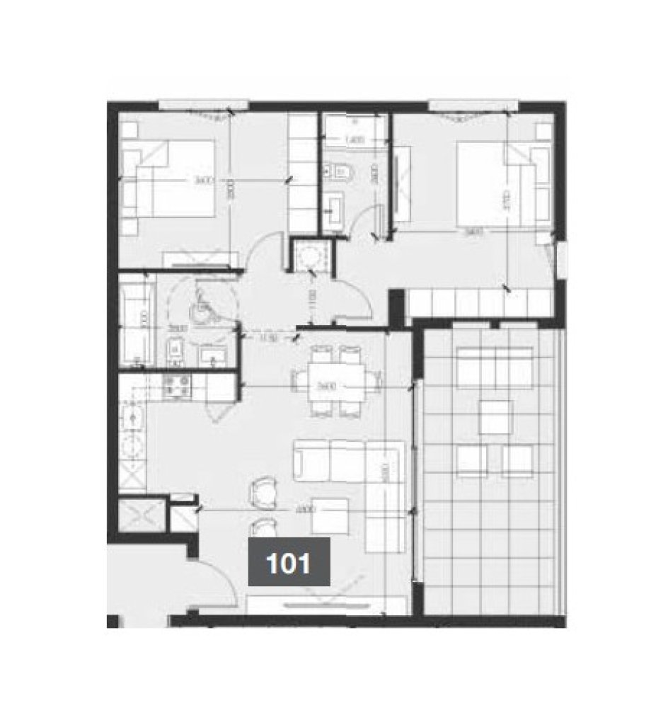 This modern 2 bedroom, 2 baths apartment has an internal covered area of 84 sqm with an additional 18.1 sqm of covered veranda. The entrance is leading to an open plan kitchen, dining and living area, that is extending straight further to a covered veranda. From the entrance, on the left is a corridor that is leading to bathrooms and bedrooms. The master bedroom is featuring an en-suite bathroom.