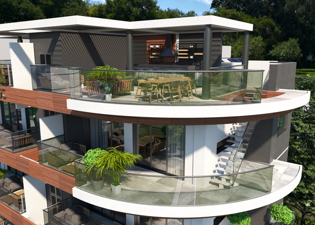 This is a high-end residential project located in the luxurious area of Strovolos in Nicosia, situated on a corner plot. This luxurious project is a 4-floors building composed of two spacious 2-bedroom apartments per floor (each with 3 bathrooms) and 2 penthouses with large terraces.