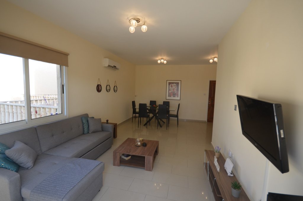 2 bedroom apartment for sale, located in a small development of apartments and townhouses just off The Thombs of Kings Avenue. The development enjoys sea views and mountain views, communal landscaped gardens with a communal swimming pool and private parking places. Some of the nice features that these maisonettes have are built-in wardrobes and private gardens. Being so close to the beach but also to all important amenities, this property can make the perfect home, retirement home or investment.