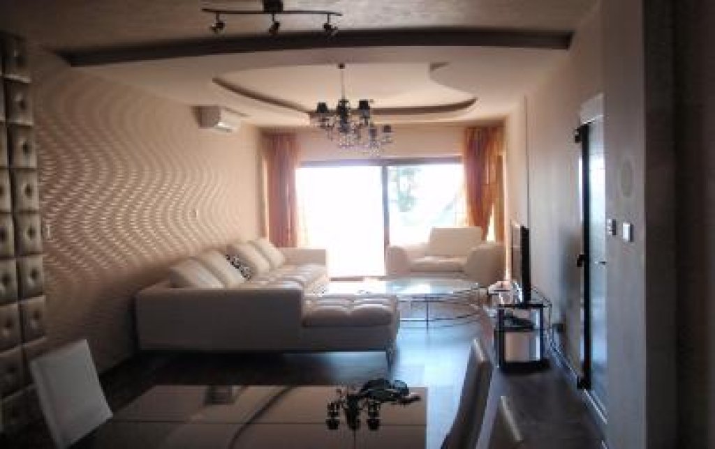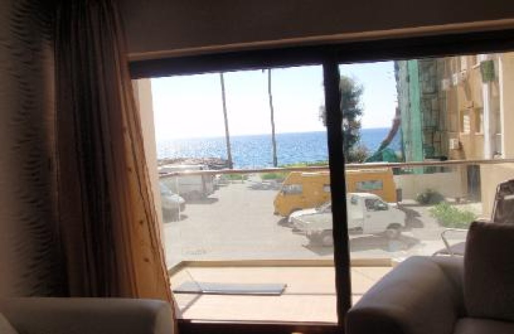Two bedroom Apartment located in Tourist Area , walking distance to all amenities. The covered area is 125 sq. m . Apartment consists of open plan fully equipped kitchen, spacious living room, 2 bedrooms (master bedroom ), full renovated,, 2WC, A/C, electrical appliances, ground floor, SEA SIDE, can be used as an office also, no title deeds yet.