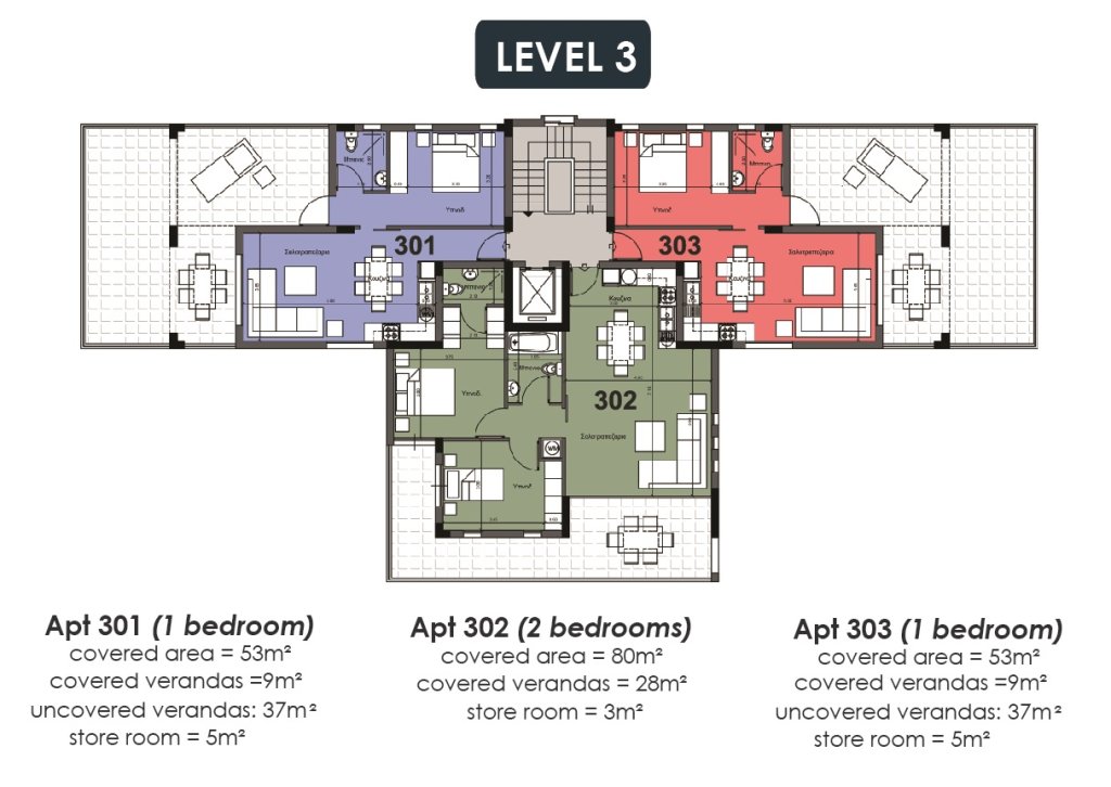 The apartment is located on the third floor and consists of an open plan kitchen, dining and living room, 2 bedrooms, 1 bathroom and 1 guest w/c.