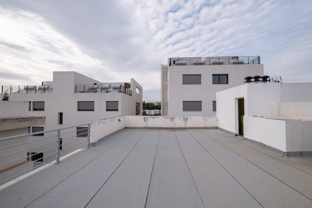 Large sitting & dining area with access to a covered veranda with open views, separate fully equipped kitchen, guest w/c, family bathroom and the two bedrooms of which one the master. Brand new a/c units in all rooms as well as mattresses. Roof garden also available as well, one covered parking spots and store room.
