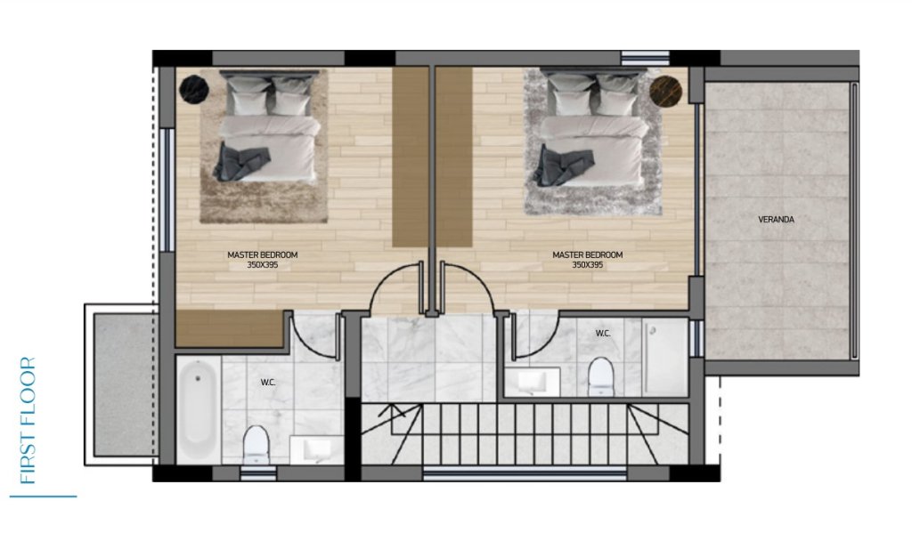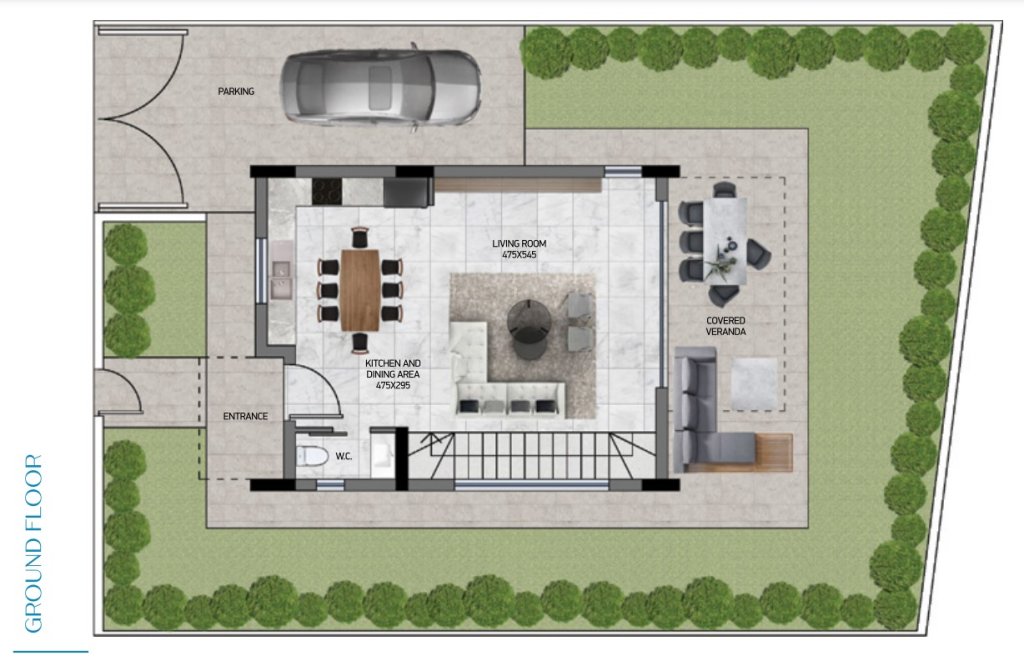 This house has a total indoor covered area of 120 sqm with 30 sqm veranda and plot size of 244 sqm. On the ground floor are an open plan kitchen, dining, and living area, guest toilet, and veranda door that is leading outside to a spacious covered veranda and landscaped garden. On the first floor are 2 bedrooms both featured with en-suite bathrooms. This house also comes with a parking place.