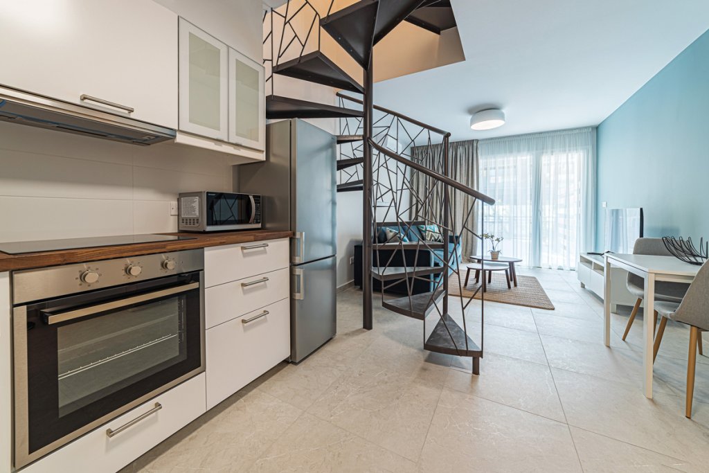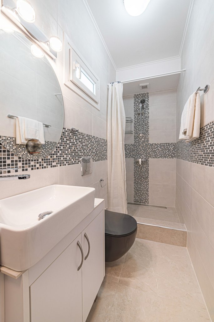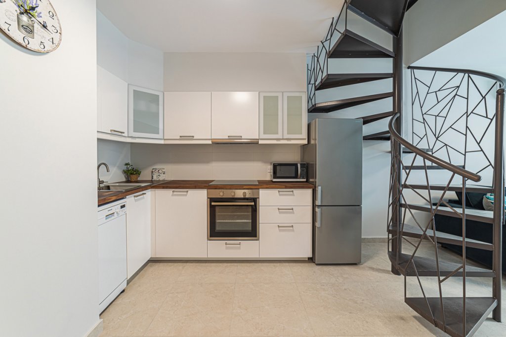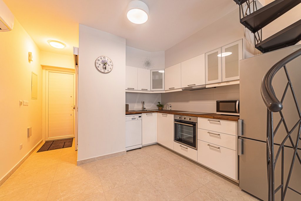 The property consists of 2 bedrooms and 2 bathrooms, a kitchen and a living room. There are heated floors, and air-conditioning in all the areas. The maisonette comes fully, with luxury furniture from the top Italian brands.