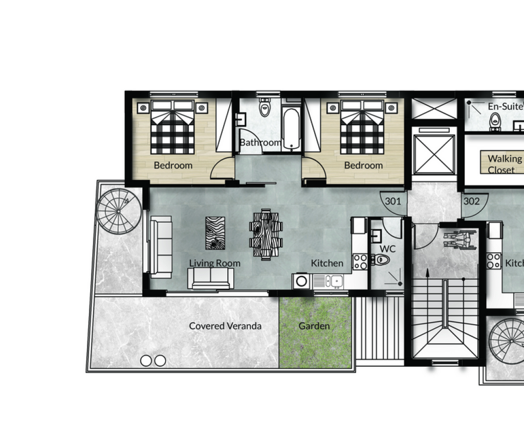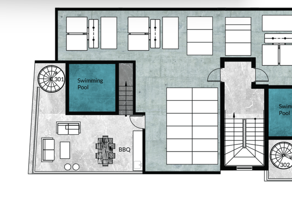 For those seeking the pinnacle of luxury, the third-floor apartments come with their own private roof gardens and swimming pools, offering a personal retreat with stunning views of the surrounding area. Whether you're enjoying your private pool or lounging on your spacious balcony, the residence delivers the ultimate in modern living.