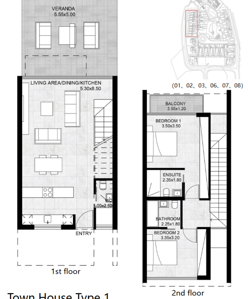 2 Bedroom Townhouse in the project that covers 21200 sq