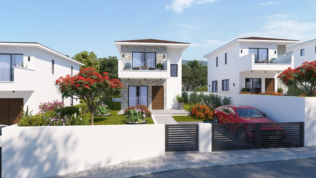 Modern Detached Villa in quiet residential area in Pyrgos with beautiful views of the village. Completed and ready for delivery immediately.