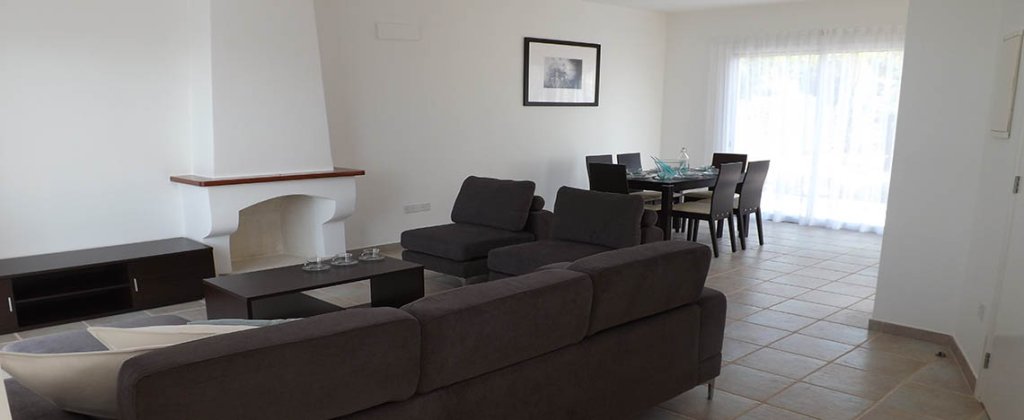 This 3 bedroom Villa with a large living/dining room has polished high spec floors with open fireplace. You can enjoy your evenings from the large patio right outside the living room overlooking the private garden with pergola.