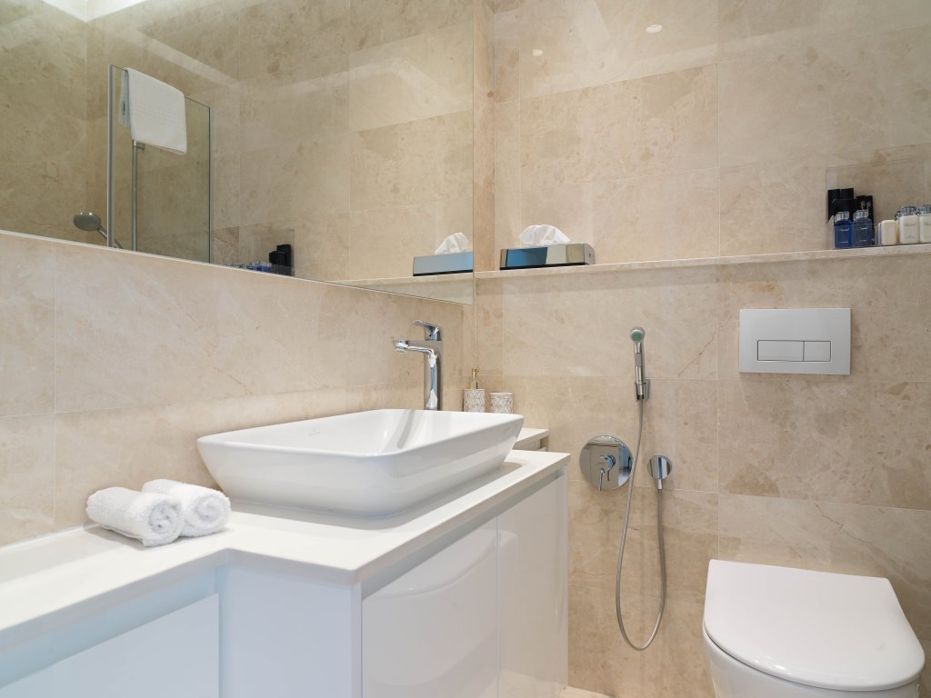 Modern lighting, Branded amenitie, Designer furniture,New modern spacious cupboards, Air-conditioning or heating depending on season, Direct dial telephone, Mini bar (for a fee). Free WiFi Internet, Men's Shaving Socket, Wake up call (on request), Sitting Area, Non-smoking rooms, His and Hers Bathrobes and Slippers, Marina Sea View, Iron-ironing board (on request), Dressing Table/Chair, Dining Area