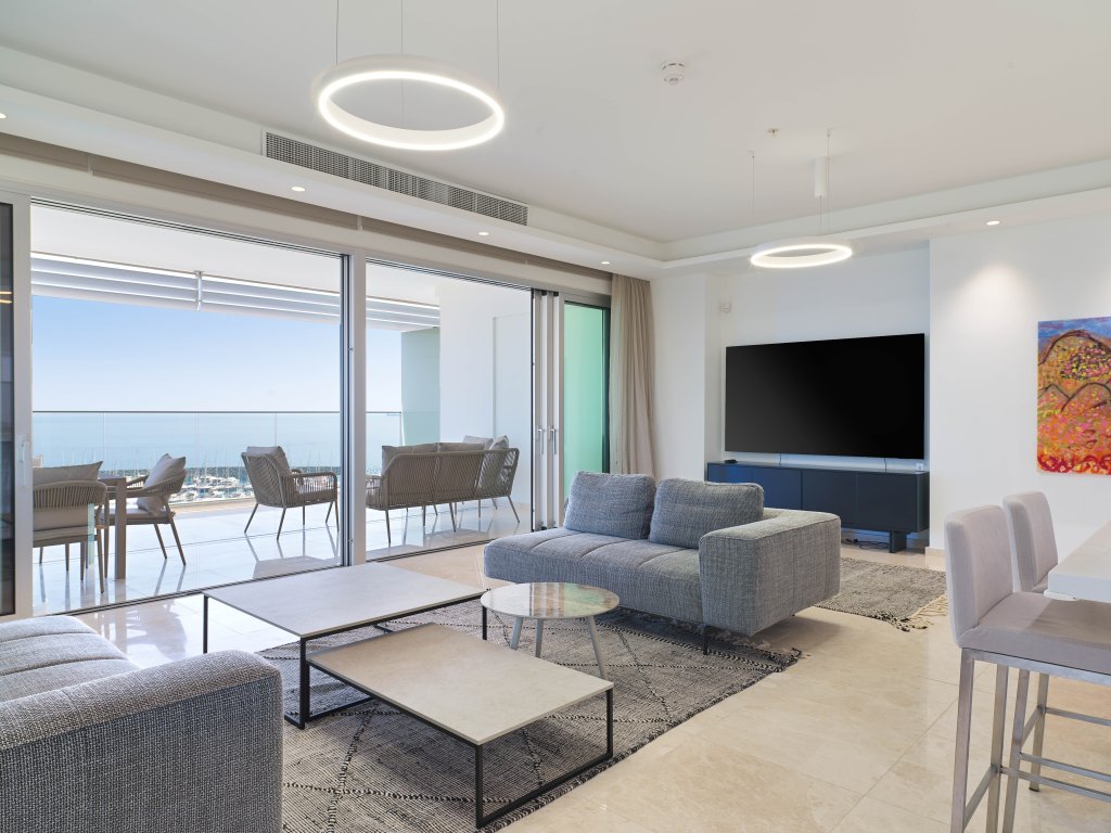 The place to live, play and enjoy rising up on the 7th floor with astonishing views of the Limassol Bay and the spacious gardens.