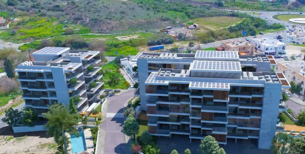 This residences is a stunning development with two five-storey blocks of apartments for sale in Paphos. Within the two blocks, one can find a range of 2 and 3 bedroom apartments, the majority of which will have excellent sea views. A number of features can be found in the development, such as a communal swimming pool for each block, solar panels which will improve the energy efficiency of the building, and of course the beautiful modern design of the building that comes with sleek lines, large window openings and concrete finishing.