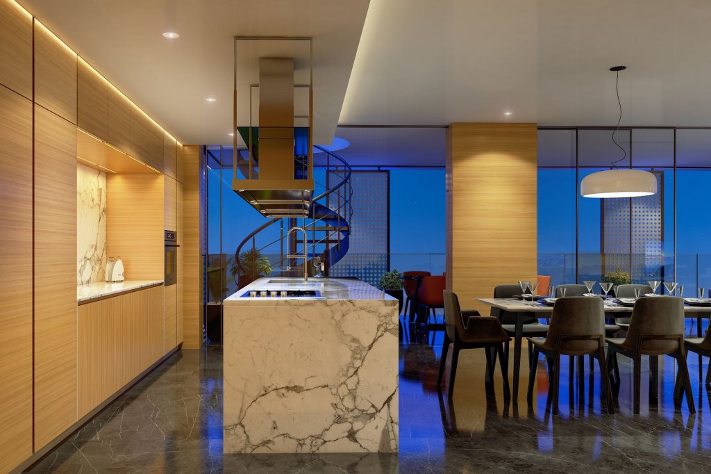 three-bedroom apartments per floor. The third floor apartment has exclusive use of the roof garden including a sun lounge and plunge pool