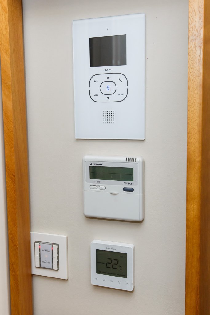 The design of the apartment is concise, simple and ideal, where the interior itself becomes functional. The open plan combines a bright and cozy living room with a spacious dining room and kitchen. The dining area with panoramic windows is easily transformed into an open terrace surrounded by eucalyptus trees.