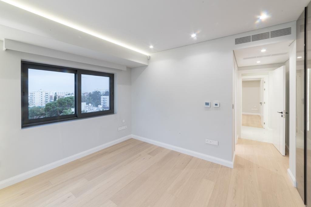 The apartment offers a bespoke design, crafted with high-end finishing such as marble, granite stones, real wood floors, open plan design kitchen, and living room. Inside you will find a guest w/c, 1 master bedroom with en-suite bathroom and a large glazed walk-in closet, 2 additional double bedrooms with en-suite bathrooms, and a large outdoor 25 sqm veranda, accessed from the living room area via fully folding glazed doors.