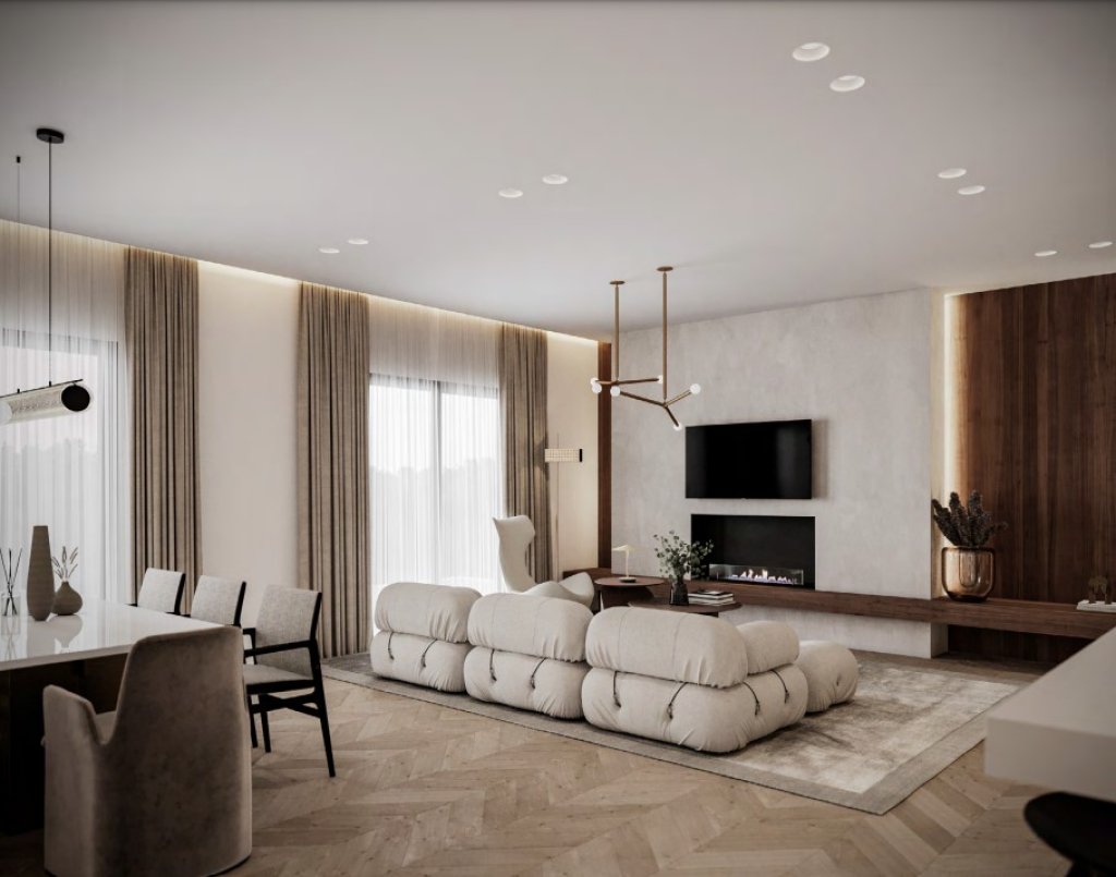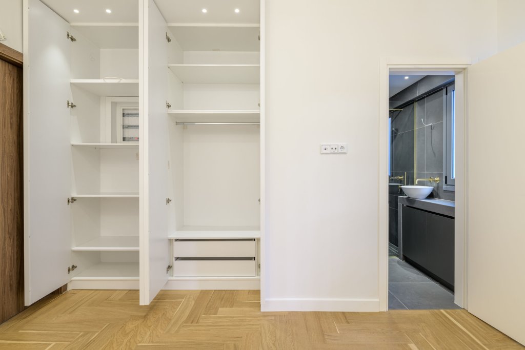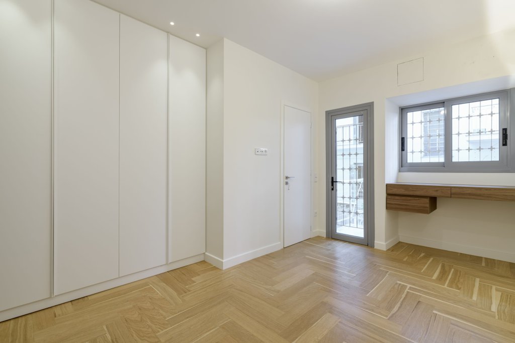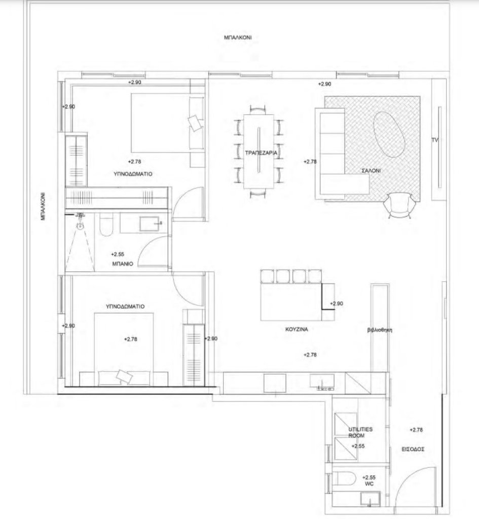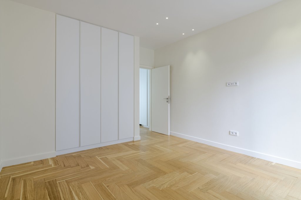 This spacious 114 sqm apartment with high ceilings, hardwood floors and high-quality materials is a rare find, with lots of character and elegance. The entrance door is leading to the corridor where on the left are the guest toilet and a utility room. From the corridor, on the left is an open-plan kitchen and dining area that is expanding further to the living area. From the living area, on the left is a small corridor leading to a family bathroom and 2 cozy bedrooms.