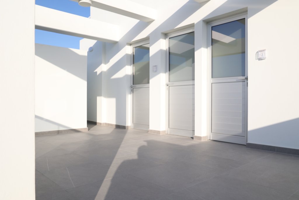 3 bedroom, 2 bathroom apartment for sale in new 7 floor building (completed in 2021), located in Larnaca town center, near Finikoudes sea promenade, American Academy, Metro, Banks and other amenities. The building is located in a quiet residential area and sectioned architectural design allows independent positioning of the apartments on each floor, offering maximum privacy. All units come with a dedicated parking place and storage and master bedrooms feature en-suite shower. This apartment enjoys individual access to private roof garden on 7th floor featuring the 3 rd bedroom, wc/shower room and barbeque area.