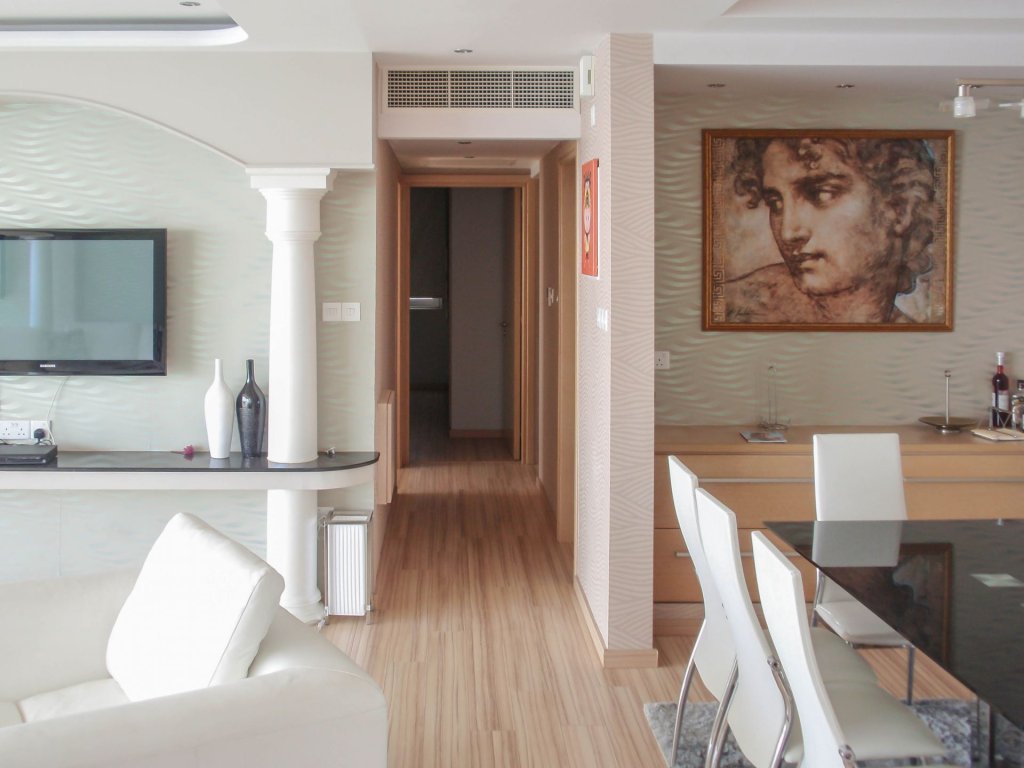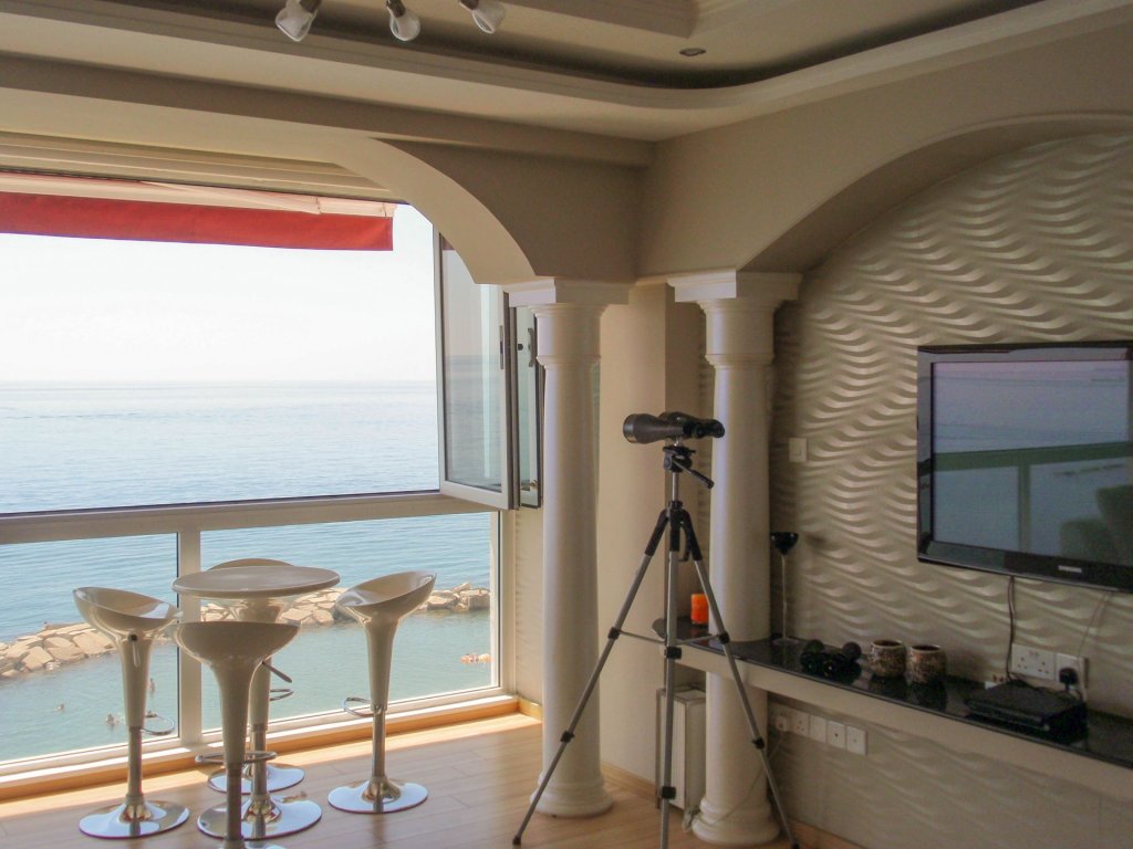 Three bedroom seafront Apartment located in Tourist Area, walking distance to all amenities. The covered area is 140 sq. m. Apartment open plan fully equipped kitchen, spacious living room, 3 bedrooms (master bedroom), covered balcony with a sea view. It is fully furnished, full renovated, 2WC, Jacuzzi, A/C, electrical appliances, F/F, Plasma TV, Satellite Antenna, Ready title deeds.