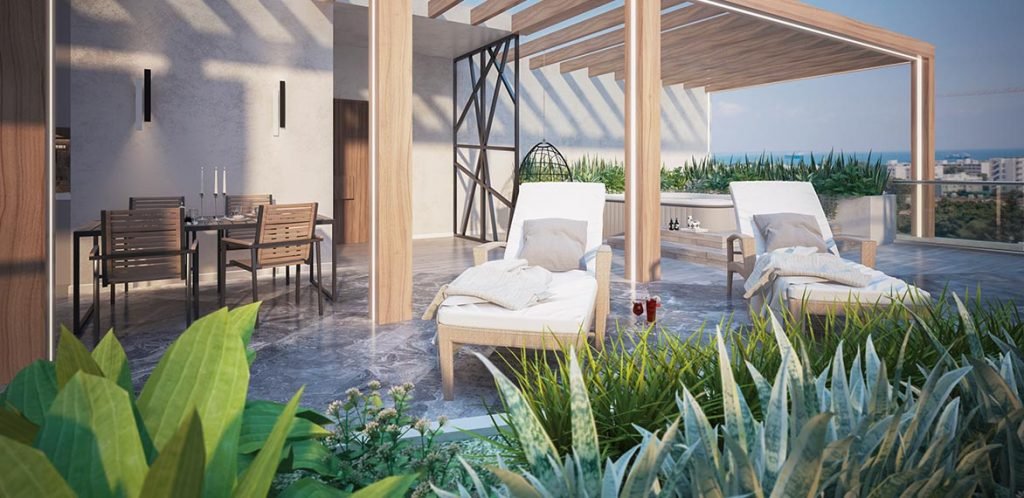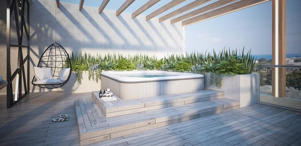 Common spaces are a luxury entrance lobby‚ open and closed areas of playground and everyday workout‚ shower rooms and an external swimming pool of 20m length. There is a covered parking with the capacity of 22 vehicles at the property, with additional and separate bicycle parking spots.The last floor of the building consists of two penthouses‚ with their own separate roof garden and rooftop jacuzzi.