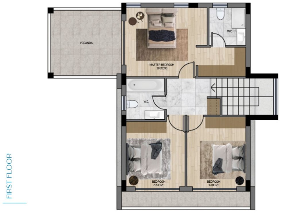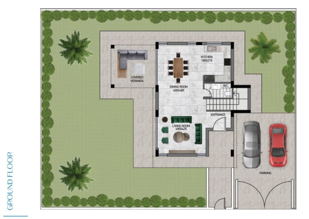 This house has a total indoor covered area of 146 sqm with 55 sqm veranda and plot size of 413 sqm. On the ground floor are an open plan kitchen, dining, and living area, guest toilet, and veranda door that is leading outside to a spacious covered veranda and landscaped garden. On the first floor are 3 bedrooms and a family bathroom and the Master bedroom features an en-suite shower and a balcony. This house also comes with 2 parking places.