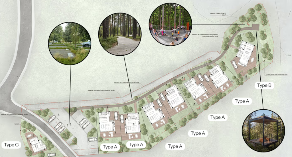 Small project located in the village of Moniatis, well-known among nature lovers for its forest landscapes and fresh mountain air. In this project, we showcase the beauty of lush forest scenery, thoughtfully enhanced by unique modern “barn house” style villas, all combined into a cozy gated community with all the necessary amenities for comfortable and safe living. This project is also unique for its proximity to essential conveniences. Within three minutes, you can find supermarkets, gas stations, restaurants, cafes, pharmacies, and more. Additionally, a highway will soon be built from Limassol to Moniatis, with the first phase of construction nearing completion, making the journey no longer than 20 minutes