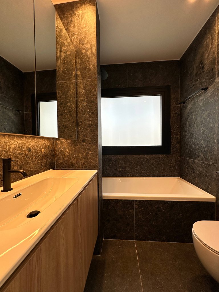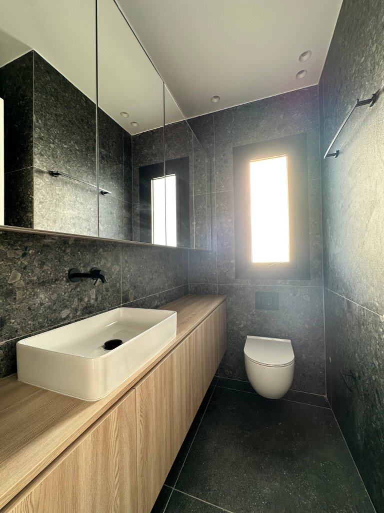 Laminated wooden floor, High-branded appliances, Italian ceramic tiles on the verandas, Underfloor heating, Pressured water system, Double glazed, Two electric sliding gates at the entrance, A/C points in all areas