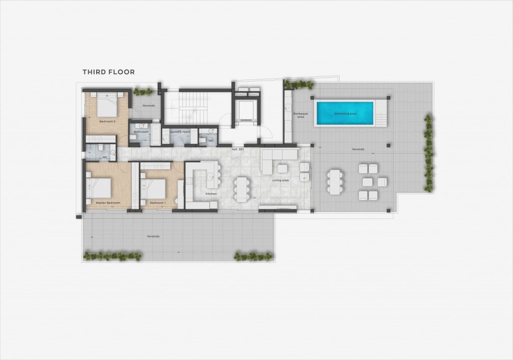 3 Bedroom Penthouse in a prestigious new development nestled in the vibrant Columbia area of Limassol. This exclusive residential building is designed with sophistication and luxury in mind, featuring seven luxury apartments, including one and two-bedroom options. Each residence is designed to offer the utmost comfort and style, tailored to meet the expectations of those seeking a luxurious living experience