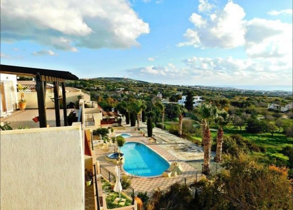 Project Features: This development is situated in an elevated beautiful position on the hills of the picturesque village of Mesa Chorio, just 2 km from the center of Pafos, and a 10 min drive to the beach. The project is within walking distance to the New International School, local taverns and a number of other amenities. The unique design of the complex, ensuring unobstructed magnificent sea views for all units, the extra size of the apartments (all having two bathrooms and big patios), the various facilities such as communal swimming pools, landscaped green mature grounds, private parking areas, as well as its prime location, make this mini resort ideal for a holiday home, permanent residence or an investment.