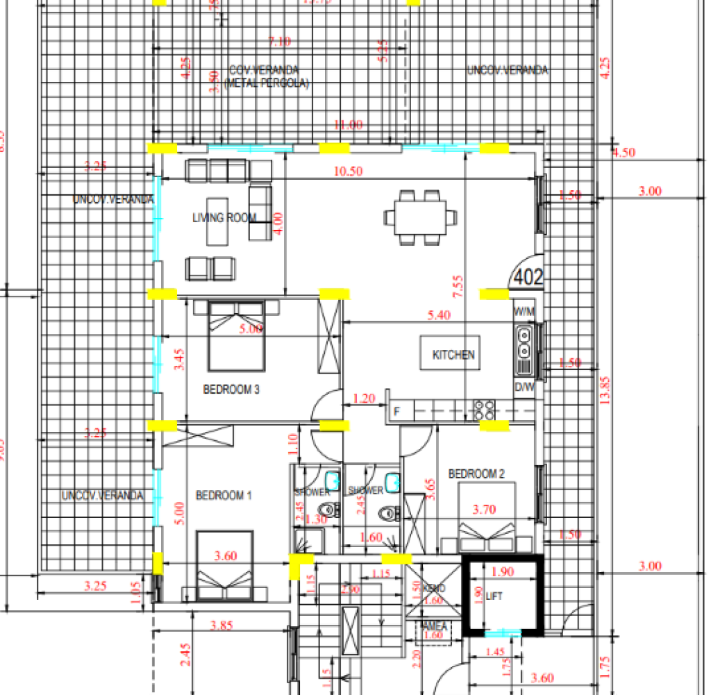 This three bedroom, two bathroom penthouse is having covered living area of 140 sqm, covered veranda of 25 sqm and roof garden 85 sqm, high quality floor, kitchen units and bathroom elements.