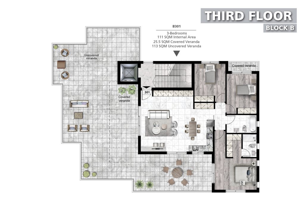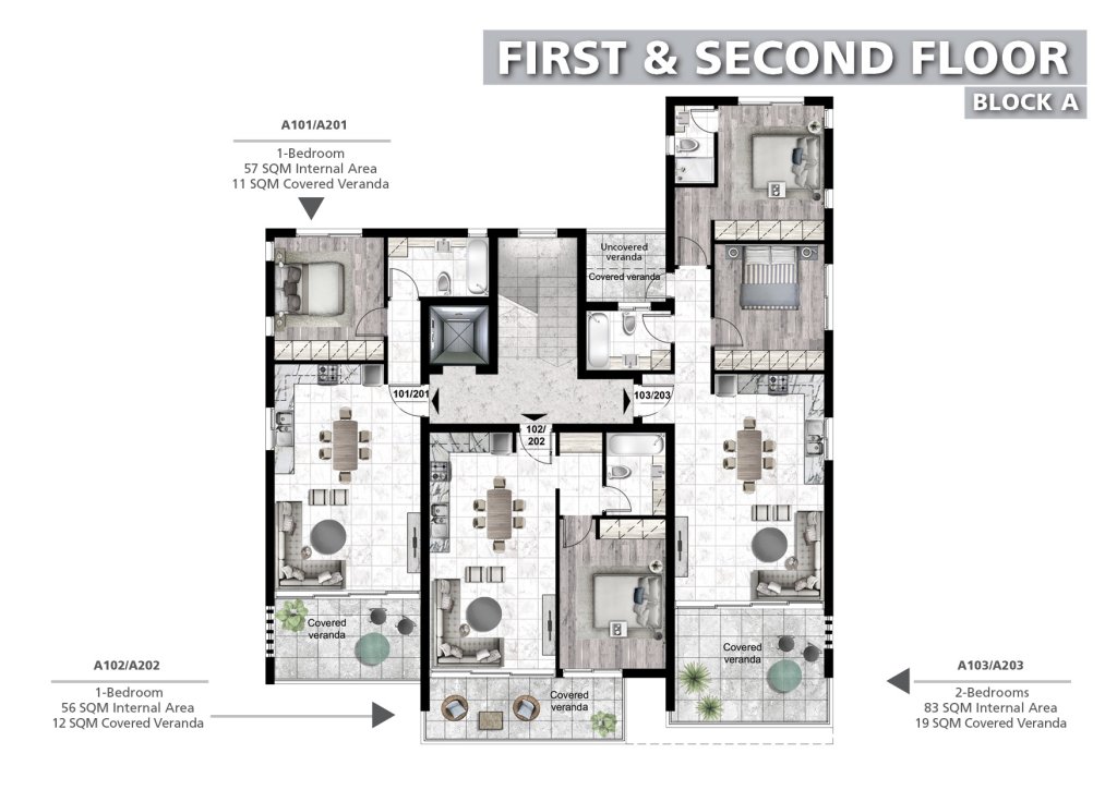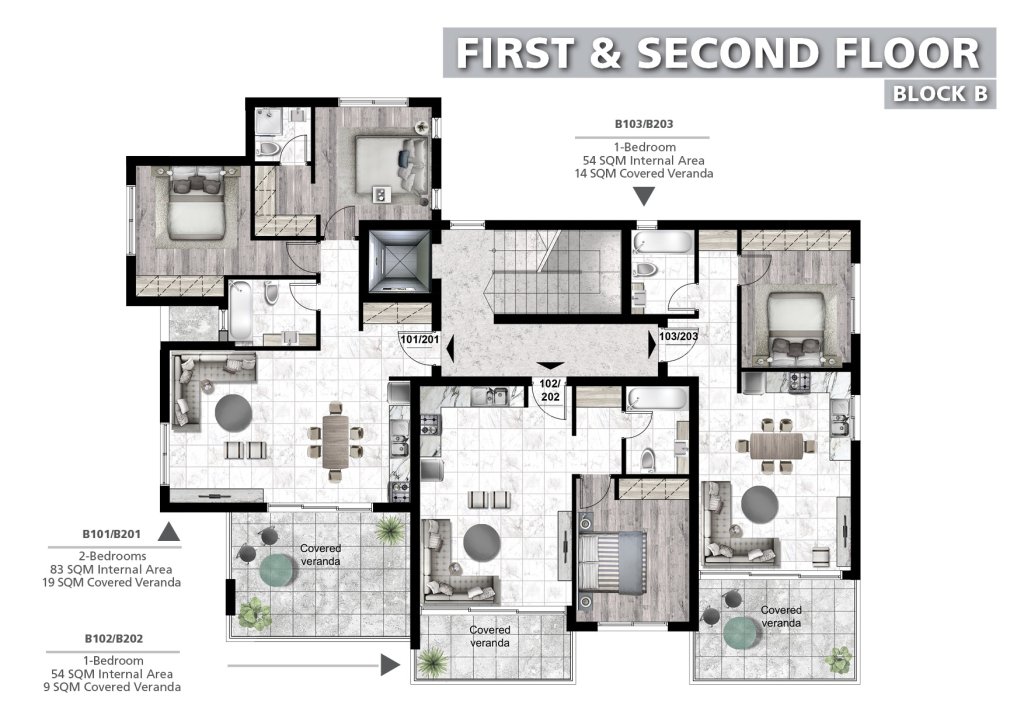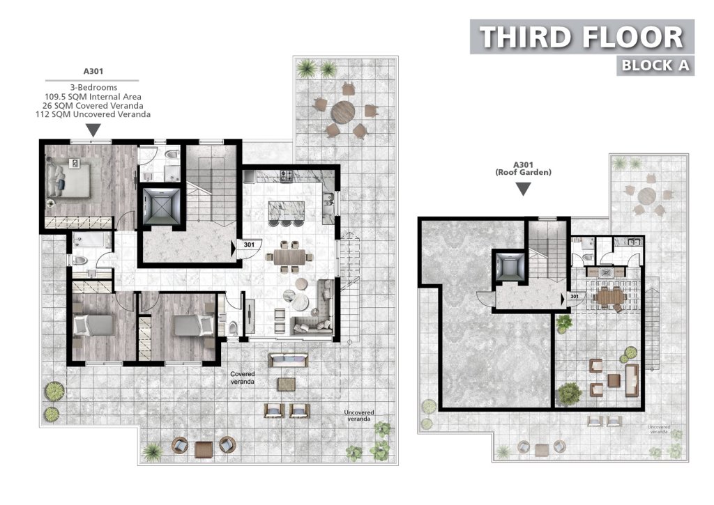 This high-end project of 2 blocks, offers a variety of luxurious and spacious 1 & 2 bedroom apartments along with 3-bedroom penthouses with large terraces.
