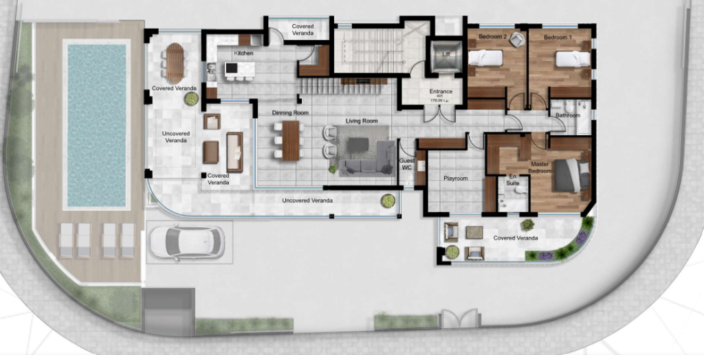 All residences have an open plan living room, covered out door areas and their own storage and parking space