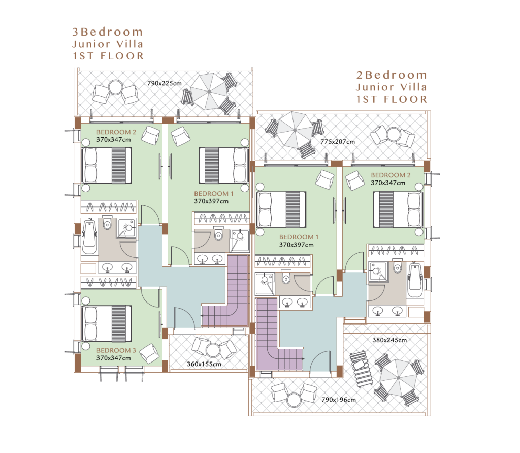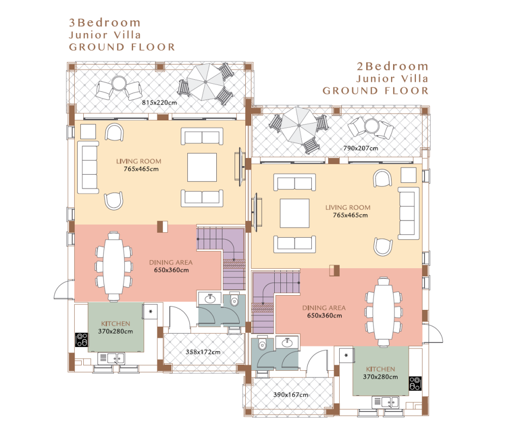 A harmonious blend of marble, granite, wood and stone can be seen throughout these unique properties with all featuring dual air conditioning, parquet flooring in the bedrooms and integrated stainless-steel appliances.