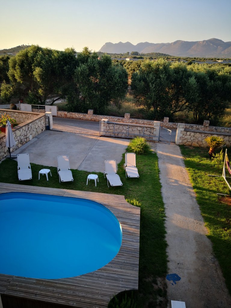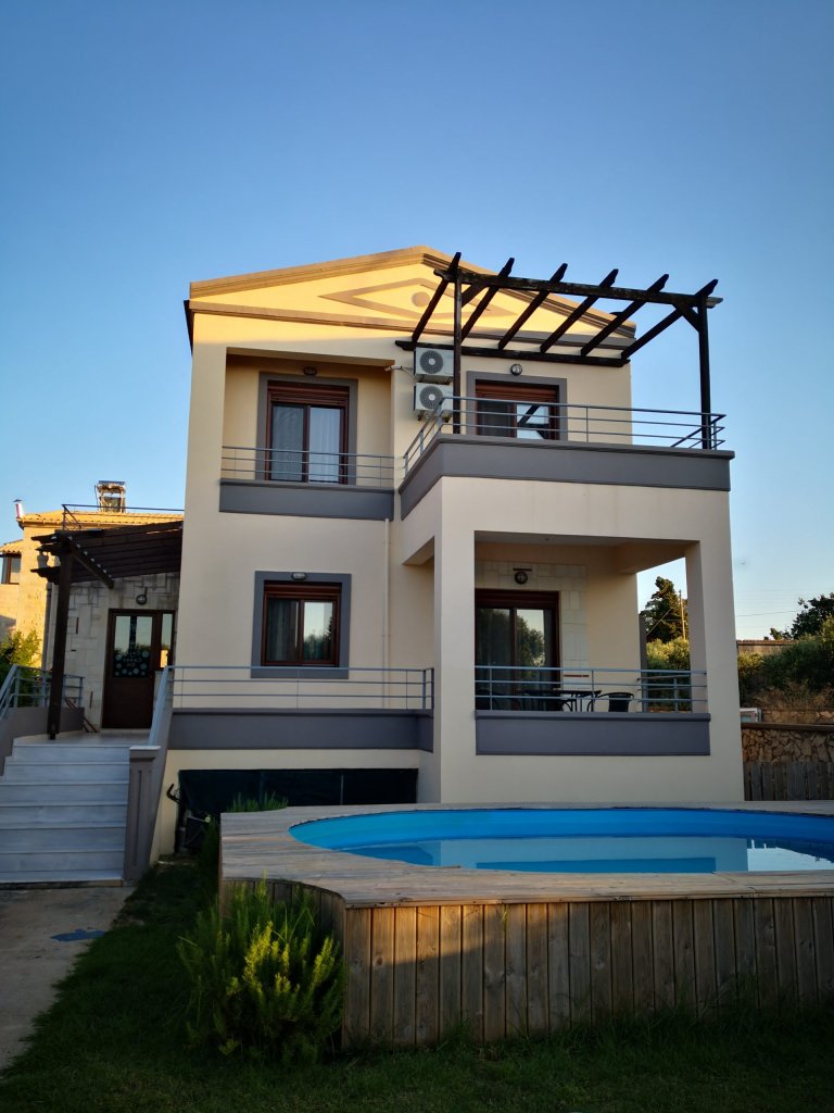 Featuring a seasonal outdoor swimming pool, a garden, and a shared lounge, the villa provides accommodation in Kathiana with free WiFi and pool views. The property was built in 2009 and has air-conditioned accommodation with a patio.