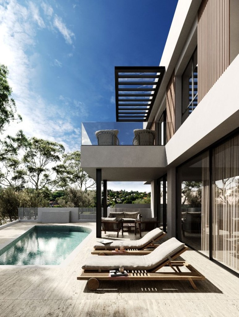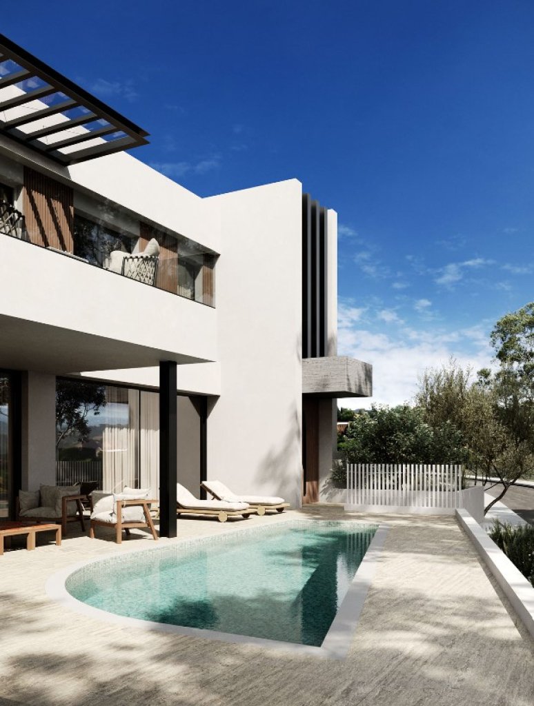 This villa is laid out on 2 levels and has some outstanding features such as smart home automation system, VRV concealed and underfloor heating, blackout shutters in bedrooms, burglar and fire alarm, etc. The swimming pool is on request.