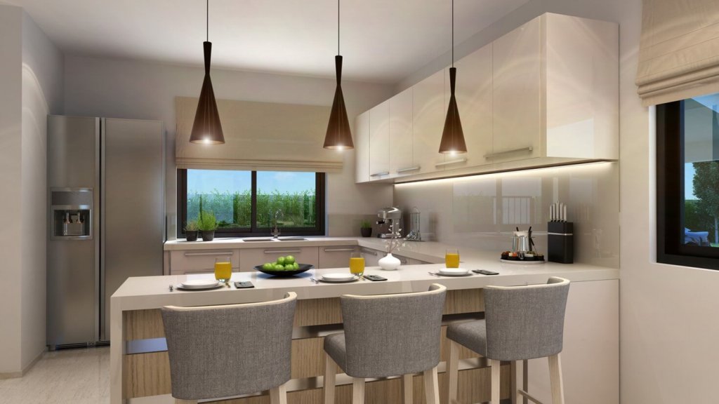Modern, detached villas with private swimming pools, large spacious living areas and en-suite bathrooms.