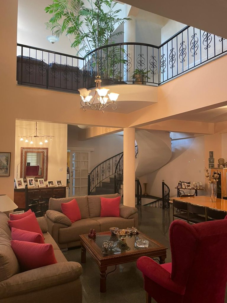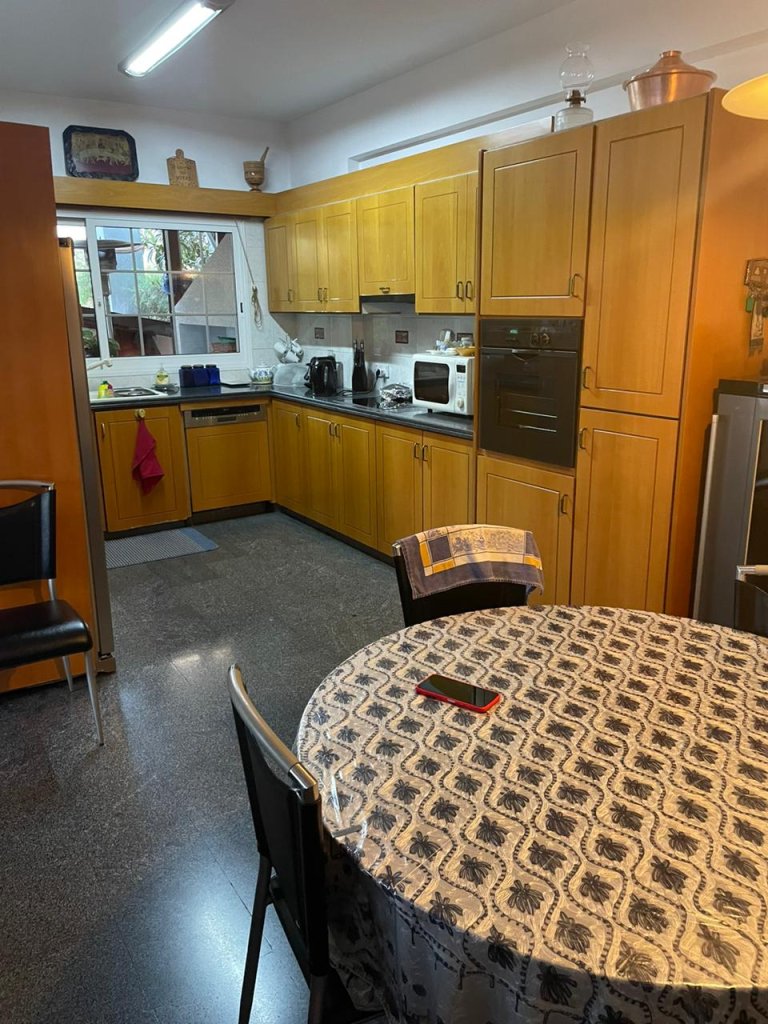 The house is in very good condition in a cul-de-sac road. It has separate kitchen with sitting area and fireplace, another high ceiling room with big dining and sitting area . There is a studio in the basement with a small kitchen, laundry area, bedroom and shower, and on the first floor there are 3 bedrooms, one full bathroom, one en-suite with a walk-in wardrobe. There is also an airy and bright sitting area. Outside there is a built in barbeque, a small garden and sitting area. There is central heating and fullyA/C