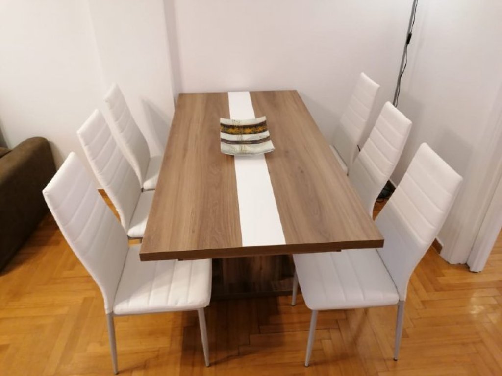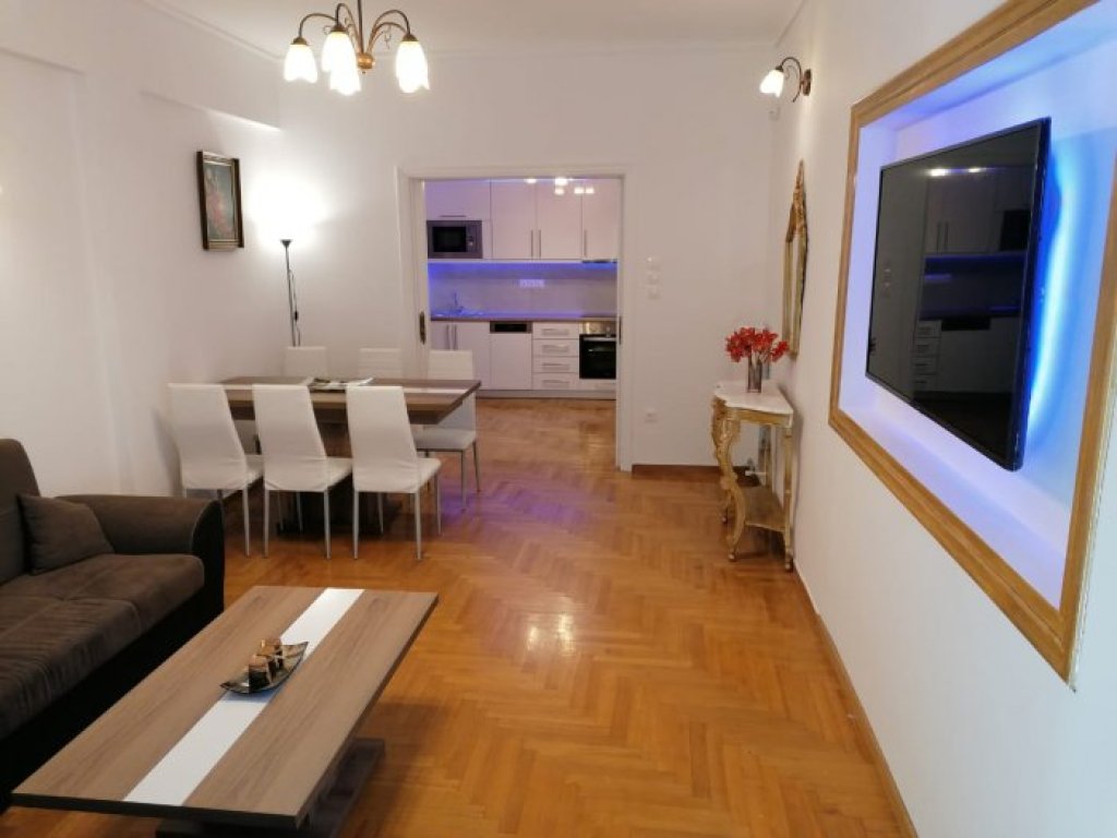 Modern apartment in central Athens, 140m2 on the 2nd floor consisting of 4 bedrooms with parquet and storage space, 1 bathroom with shower and window, 1 WC, separate kitchen with electrical appliances, security door, fully autonomous, oil central heating, nice layout, fully furnished, alarm, a/c, terraces, awnings. In a central location, very close to market, pharmacies.