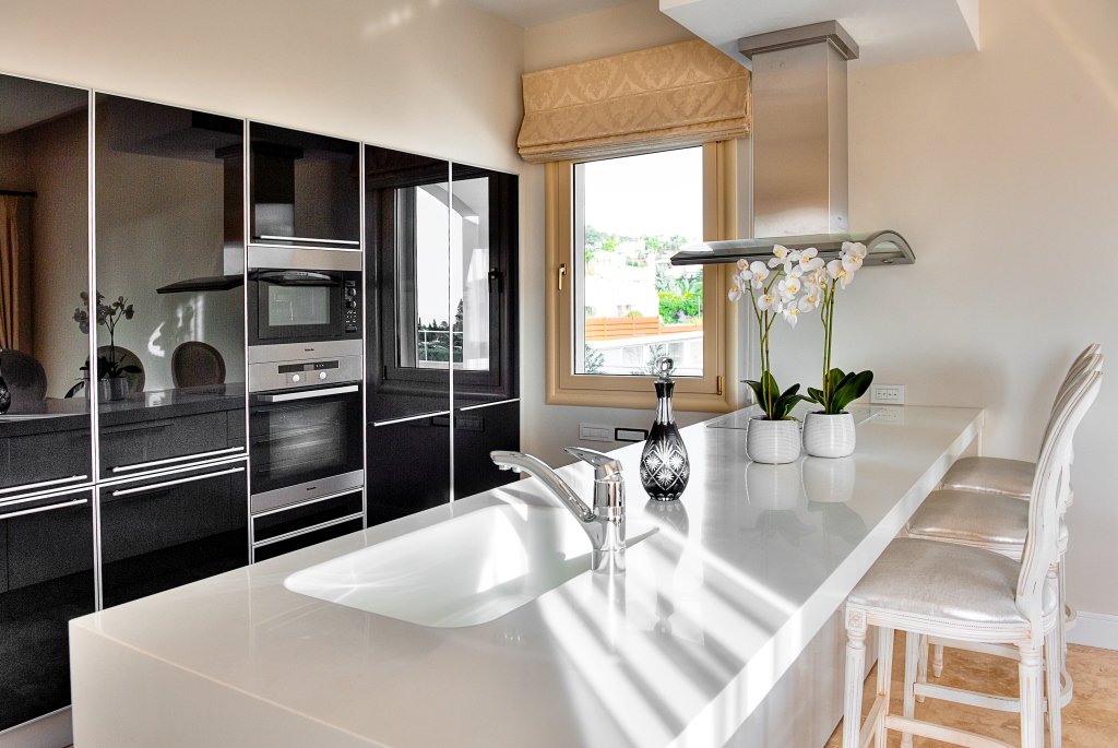 The panoramic sea views from all windows are as delightful as the interior design of the villas, combining the elegant classical elements with highly designed kitchens, wardrobes.