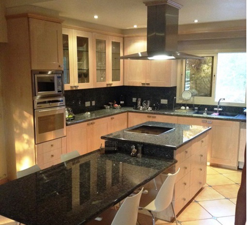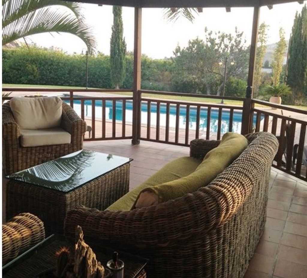The house consists of 4 bedrooms, 1 bath, 2 showers, 3 wc, ac, extra tank for cold water, double glazed windows UV protected, garden, central heating, overflow swimming pool, Jacuzzi , garden, alarm, covered parking place for 2 cars, storage room, furnished. Guest room with wc, shower, ac, floor heating.