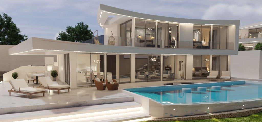 Refined contemporary villa set on a generous private plot, offering expansive interiors and breathtaking mountain and sea views. Featuring elegant en-suite bedrooms, designer bathrooms, and seamless indoor-outdoor living, the residence is complemented by an infinity pool, sun terraces, and sophisticated entertaining spaces.