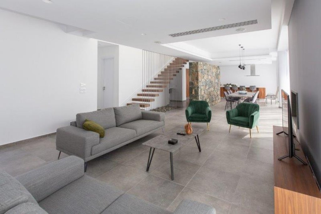 This beautiful house in Moniatis, Limassol takes the form of a minimalistic structure placed within a privileged plot of land at the