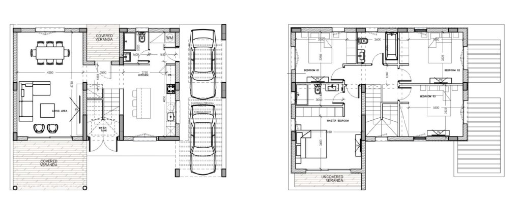 This modern 4 bedroom, 3 baths villa has an internal covered area of 165 sqm with an additional 23.5 sqm of the covered veranda. The plot size is 282 sqm. The villa is laid out on two levels. Open plan living, dining and kitchen area, and guest toilet are at the ground level, and bedrooms and 2 baths are at the 1st floor. The master bedroom features en-suite bathroom. This villa has also 2 private parking places.
