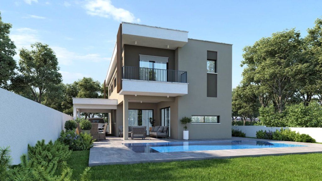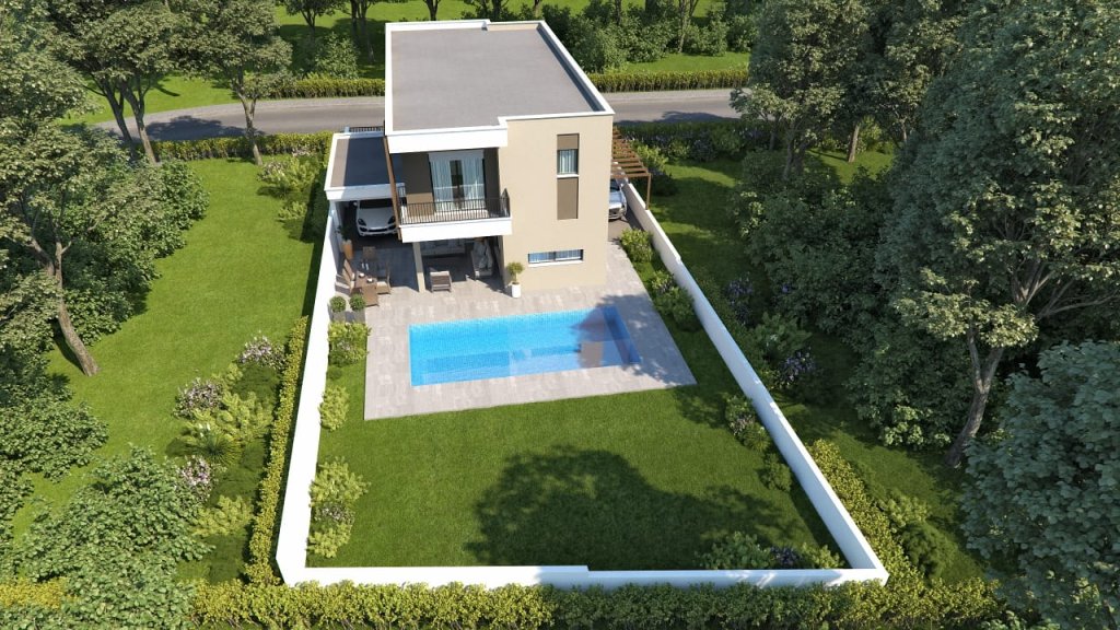 New, modern, luxury 4 bedroom house, specifically designed by professionally indemnified architect in accordance with the European nature. The house comprises of 4 bedrooms on the first floor and the master bedroom is en-suite. The house is located in a quiet area, near a dead end, and is adjacent to green space. It is placed near the tourist area of Germasogeia, with close proximity to the roundabout, and it is 2 minutes by car towards the sea. The indoor covered area of this house is 186 sqm, with 43 sqm covered veranda and 20 sqm covered garage. The plot size is 465 sqm.