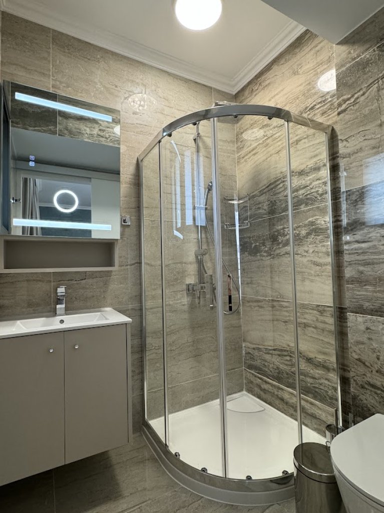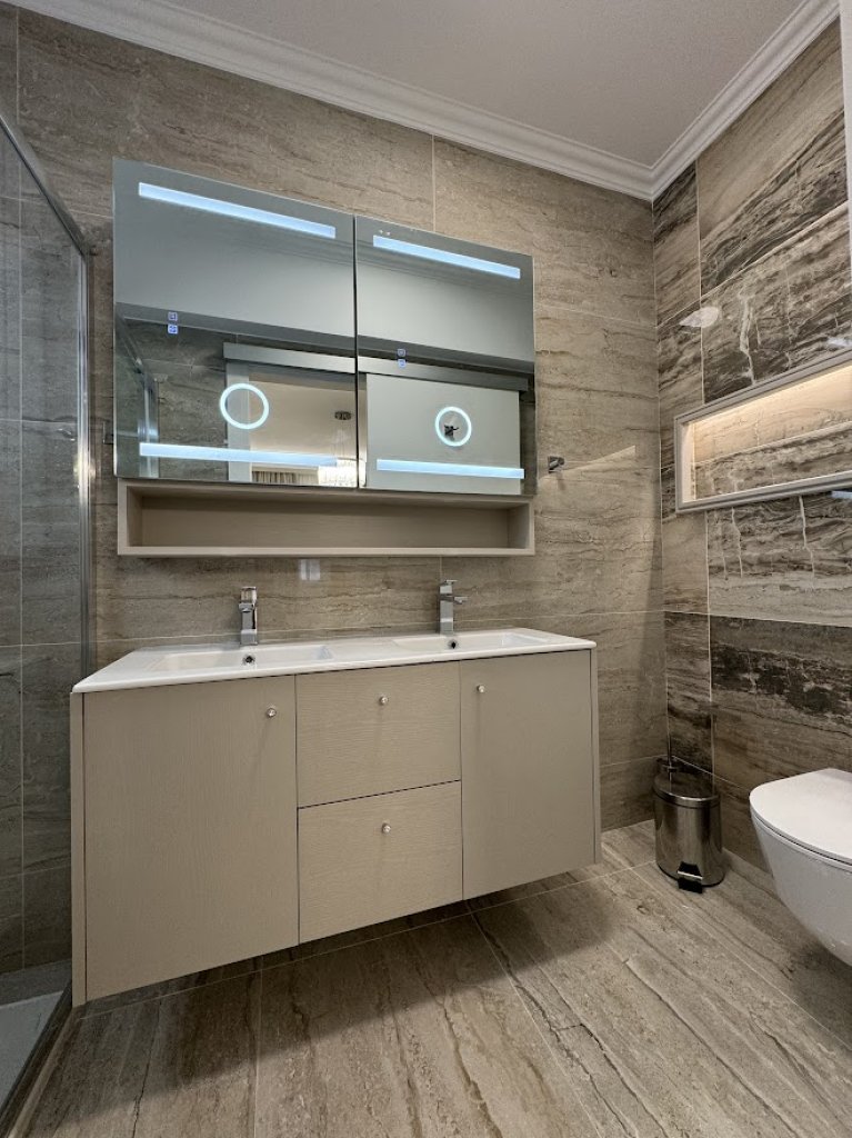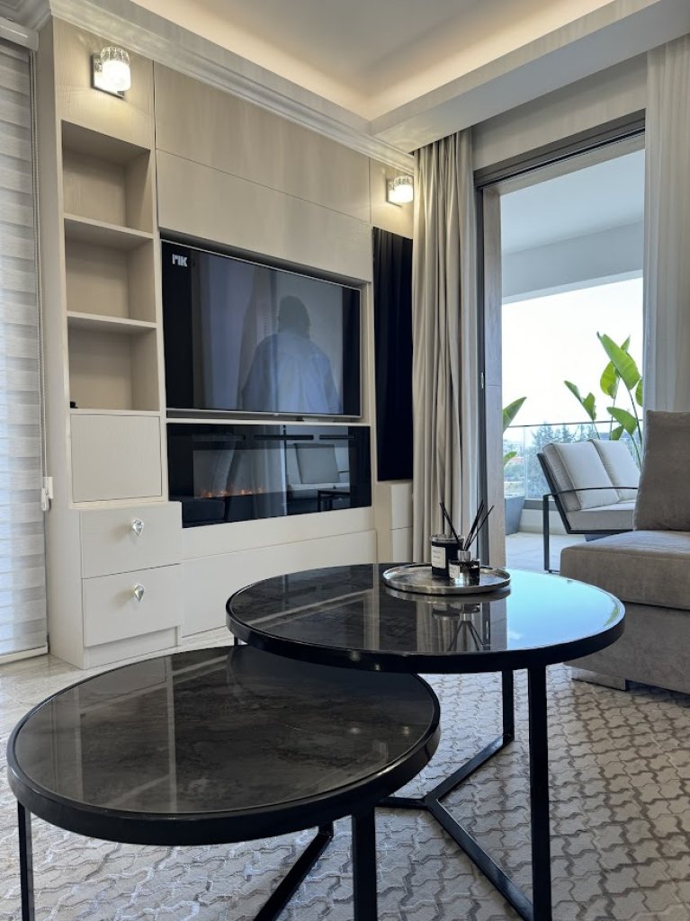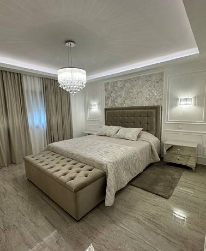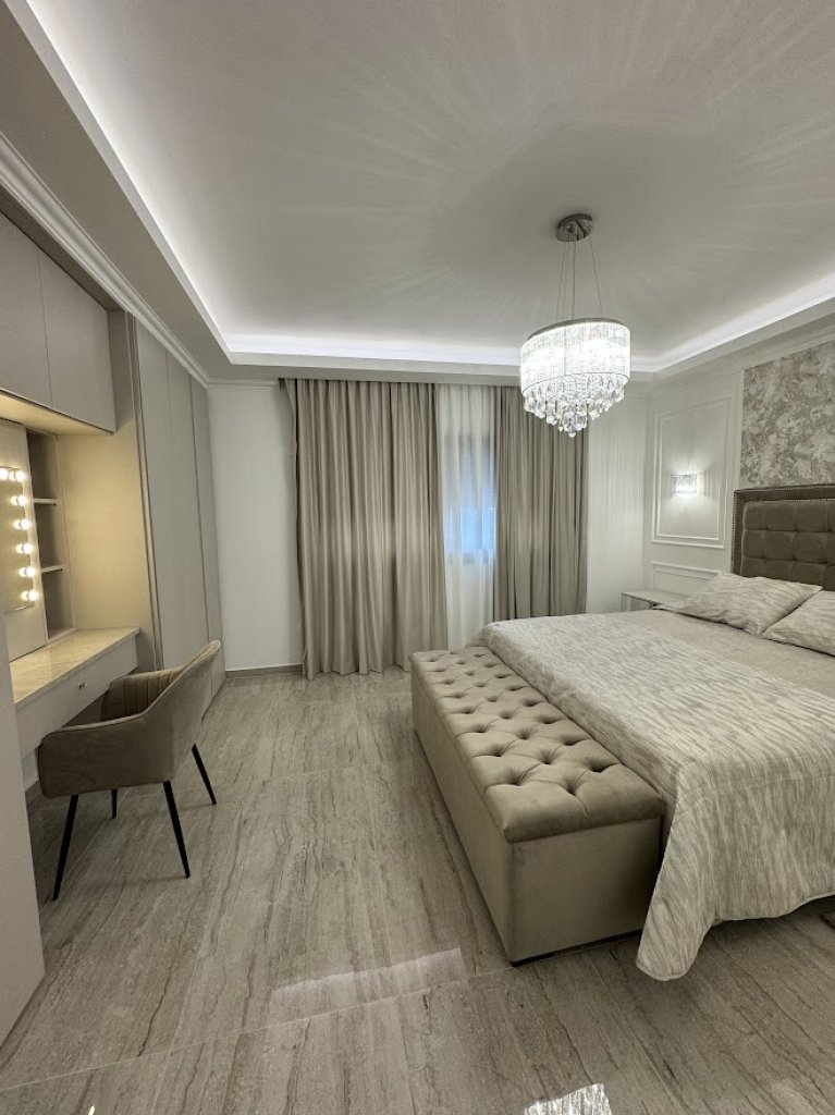 Photovoltaic panels, Master bedroom with Ensuite, Secondary and third Master bedroom with private ensuite and Kitchenette, Complete with a separate entrance and a connecting Door to the entire flat , Ideal for Guests , housemaid or Relatives, Luxurious Bathroom Featuring a Jacuzzi Bath, Electrical underfloor heating system, Mosquito nets, Electric shutters installed in the bedroom, Entrance phone with a color camera for enhanced security, Fully air conditioning units, Impeccably furnished interior for a complete living experience, Thoughtfully designed lighting arrangement to illuminate every corner, Elegant curtain fixtures to provide privacy and style, Electrical appliances, Equipped with a smart 55-inch high-definition television and an electric fireplace, Luxurious rugs for added comfort and aesthetics, A fully-equipped kitchen with modern appliances and amenities, High-quality linen to ensure a comfortable and cozy living environment, An advanced alarm system for enhanced security, color camera-equipped doorbell, A secure fireproof entrance door, Solar water system, Water pressure system for your daily needs, Expansive Terrace and Rooftop Garden